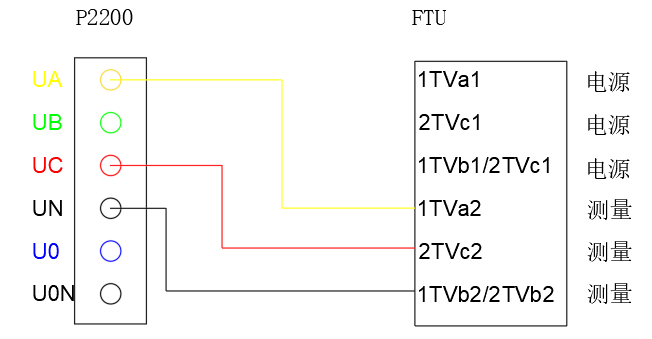 配電之星-P2200 配電自動化終端測試儀A相電壓作為FTU的電源側電壓,C相電壓作為FTU的負荷側電壓。
