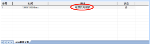 狀態序列設置完成后開始試驗,觀察開關狀態,出現先合閘再跳閘狀態變化,同時配電之星-P2200 模擬主站收到一個負荷側正向閉鎖的SOE信息。